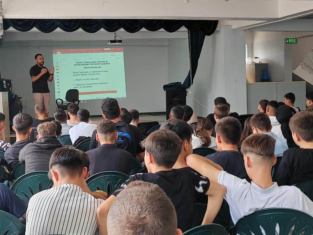 Uyum haftası çalışmaları kapsamında 9. sınıf öğrencilerimize yönelik okulumuz hakkında bilgilendirme, akademik ve mesleki gelişimlerini desteklemek ile okulumuza kısa sürede uyum sağlamaları amacıyla okul rehber öğretmenimiz, alan şeflerimiz ve öğretmenlerimiz ile öğrencilerimize bilgilendirmeler yapılmıştır.